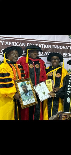 At his investiture on Friday as one of the professors by the Omniversity Imperial College, with headquarters in Missouri, United States of America.